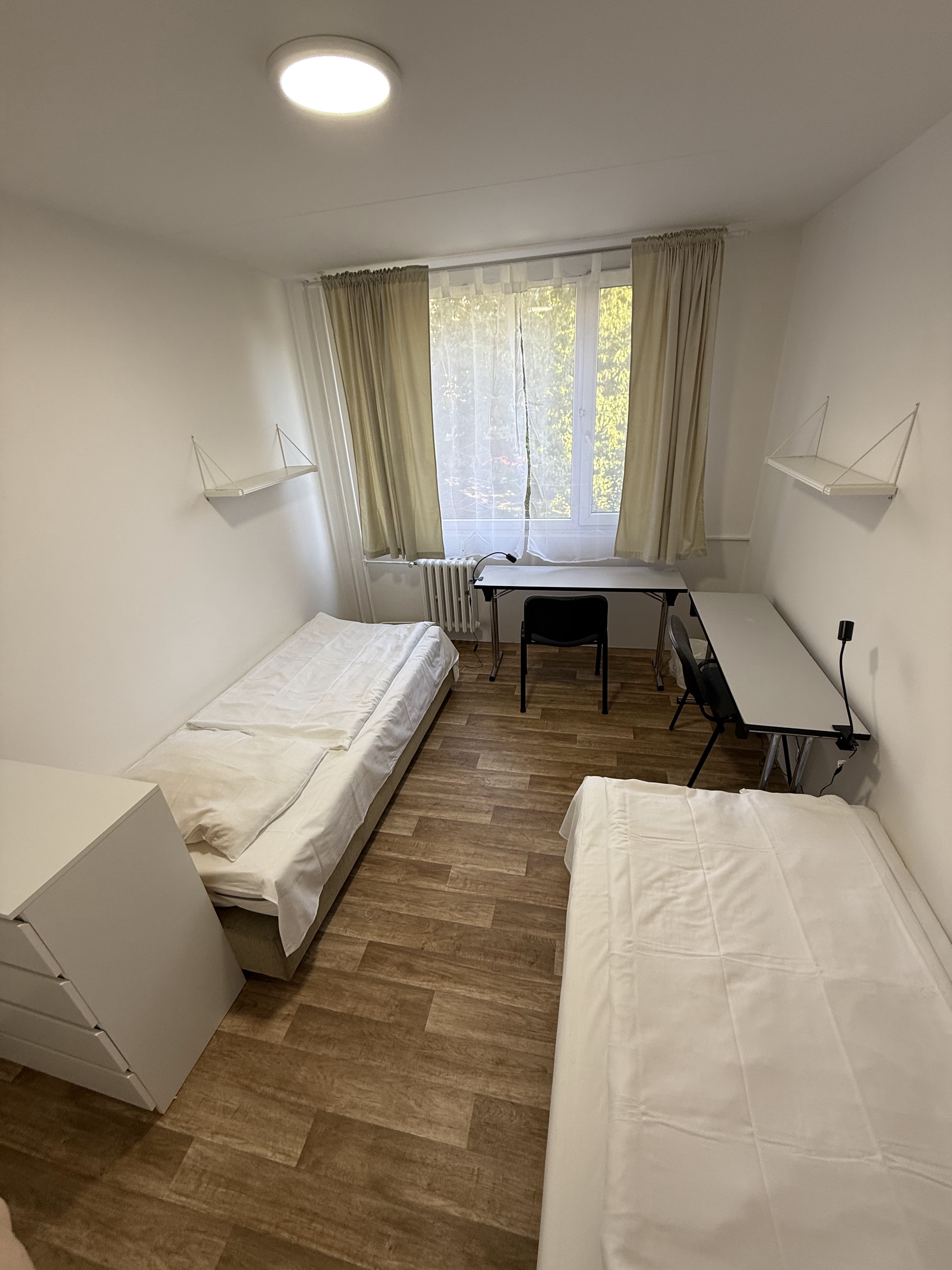 Newly renovated furnished apartment. Under one lock are 1x single Standard room (8 m2), 1x double Premium room (13 m2) and a special 2-bed suite with a balcony (20 m2), which includes its own separate, equipped kitchen with a refrigerator, microwave and stove. The apartment has a shared hallway, toilet, bathroom and a number of storage spaces. Shared by guests on the same gender.